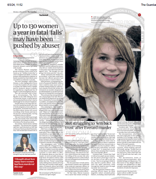 La publicación del artículo no fue casual pues coincide a su vez en el tiempo con la emisión de la miniserie documental compuesta por tres episodios; The Push: Murder on the Cliff (El Empujón: Muerte en el Acantilado) por parte del canal Channel 4 británico y la que os recomiendo su visionado.